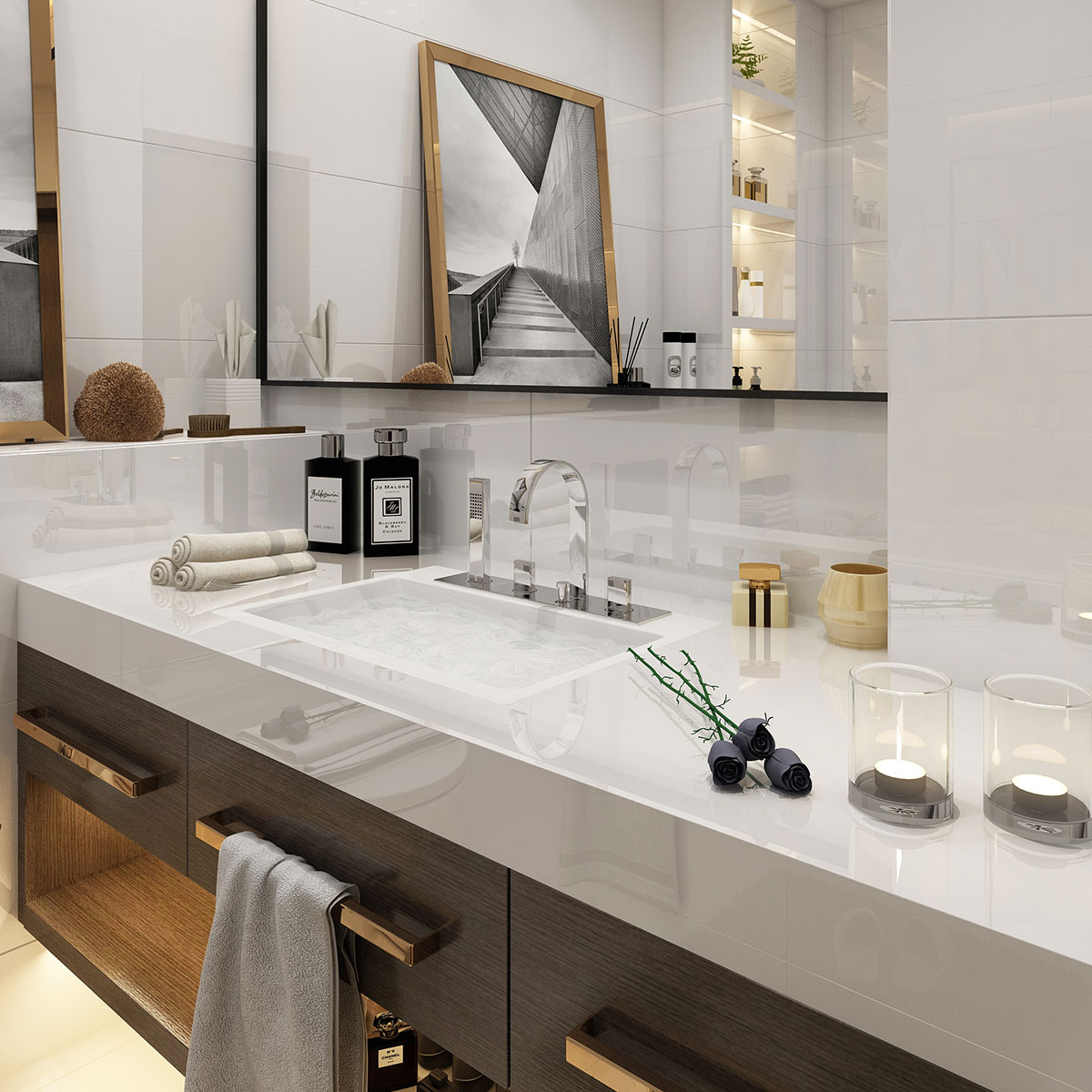 Thassos Mermer'in parlak yüzeyi, ışığı yansıtarak mekana aydınlık ve ferah bir görünüm kazandırır. Zarif ve sofistike bir atmosfer yaratmak isteyen tasarımcılar için ideal bir tercihtir. Hem modern hem de klasik tarzlarda mükemmel bir uyum sağlar.